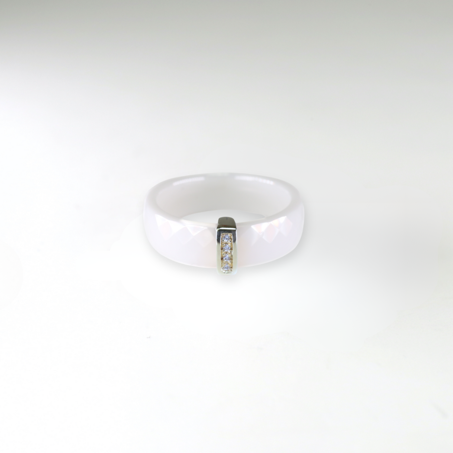 Keramický prsten se 14 Kt bílým zlatem a přírodními diamanty.