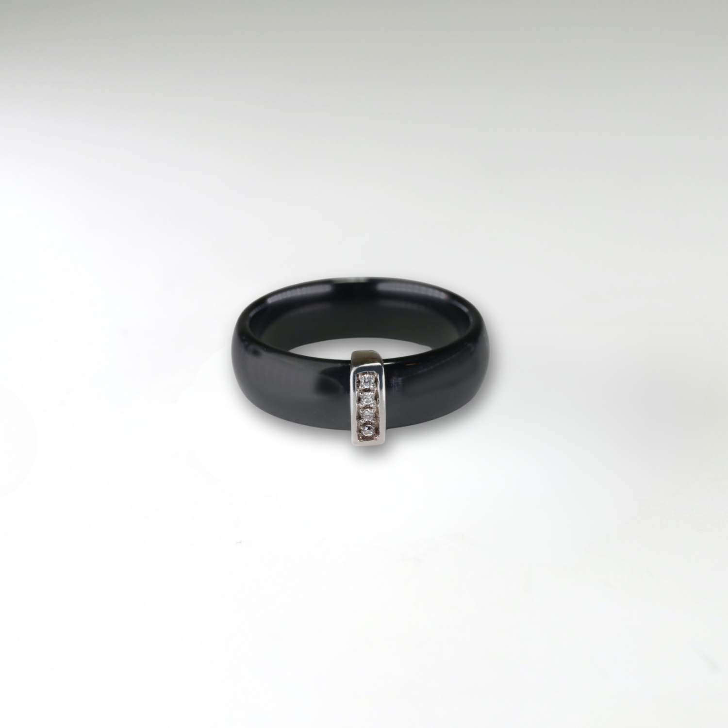 Keramický prsten se 14 Kt bílým zlatem a přírodními diamanty.