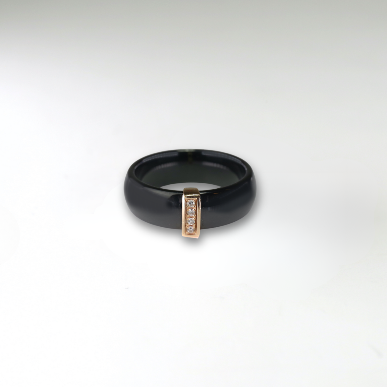 Keramický prsten se 14 Kt růžovým zlatem a přírodními diamanty.