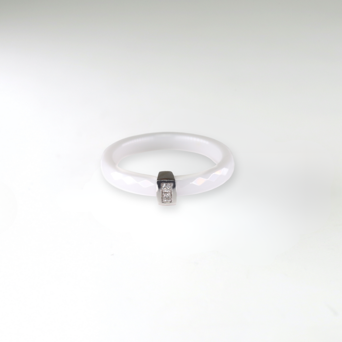 Keramický prsten se 14 Kt bílým zlatem a přírodními diamanty.