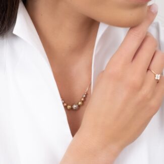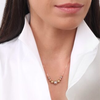 | Náhrdelník z kuliček ze 14 Kt kombinovaného zlata. Rozměry kuliček: 2 x 3 mm, 2 x 4 mm, 2 x 5 mm, 2 x 6 mm a 1 x 8 mm. Cena šperku je včetně řetízku v délce do 50 cm. Požadovanou délku řetízku v cm napište do poznámky v objednávce. Na vaše přání je možné zvolit i jiné barevné kombinace kuliček (připište do poznámky v objednávce). |