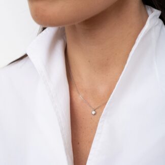 | Náhrdelník ze 14 Kt bílého zlata s přírodním diamantem. Cena šperku je včetně řetízku v délce do 50 cm. Požadovanou délku řetízku v cm napište do poznámky v objednávce. |