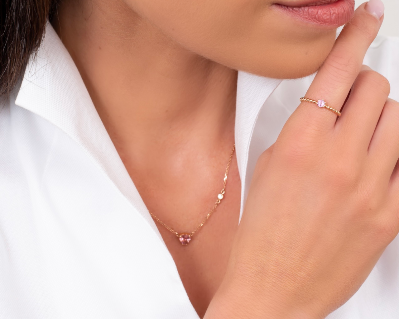 Náhrdelník srdíčko – růžové zlato, turmalín
