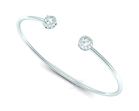 | Náramek z pružné šanýry ze 14 Kt bílého zlata s přírodními diamanty. | |