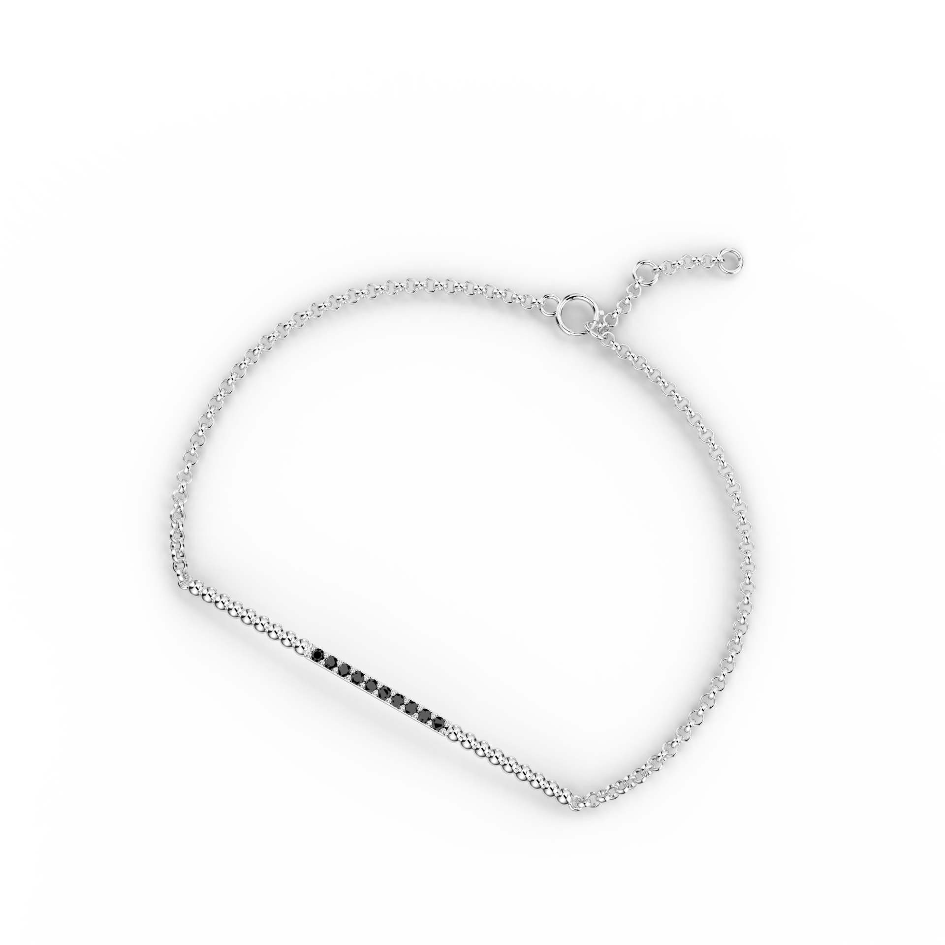 | Náramek Bubbles Ray ze 14 Kt kuličkového bílého zlata s černými diamanty a nastavitelným řetízkem. |