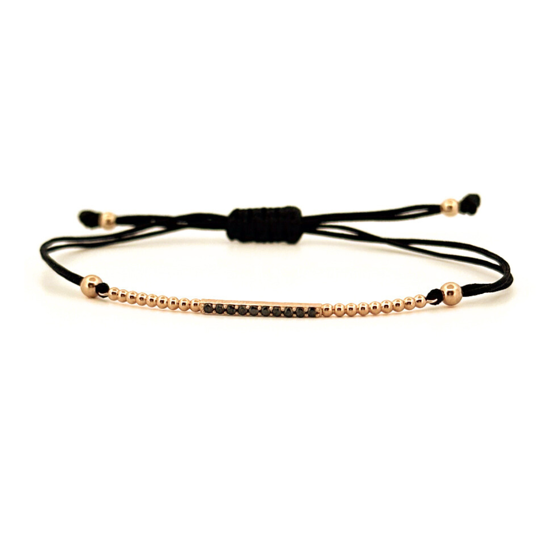 Náramek Ray na šňůrce – růžové zlato, černé diamanty