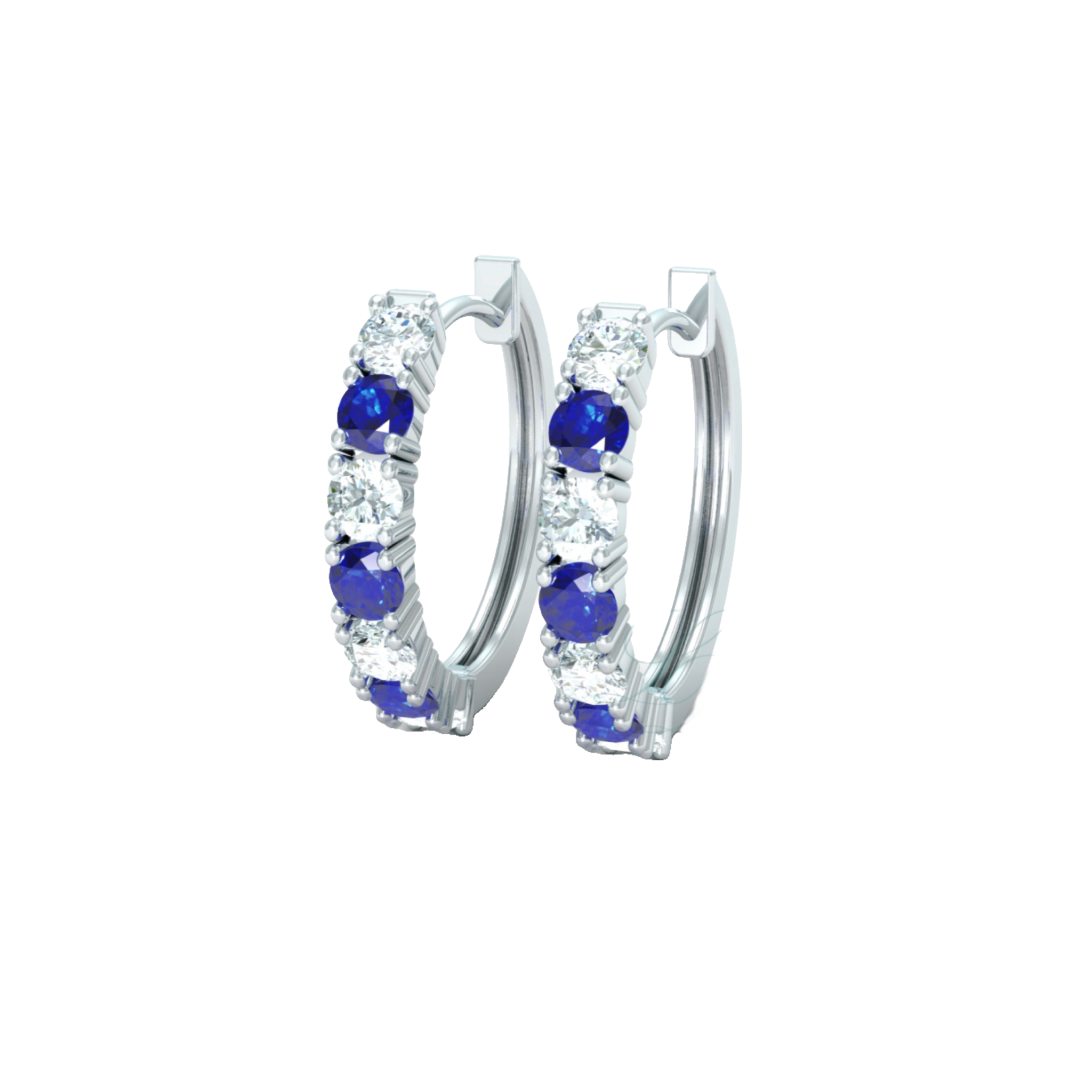 | Náušnice ze 14 Kt bílého zlata s modrými safíry a přírodními diamanty. | |