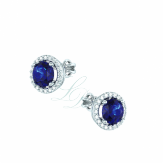 | Náušnice ze 14 Kt bílého zlata s modrými safíry a přírodními diamanty.