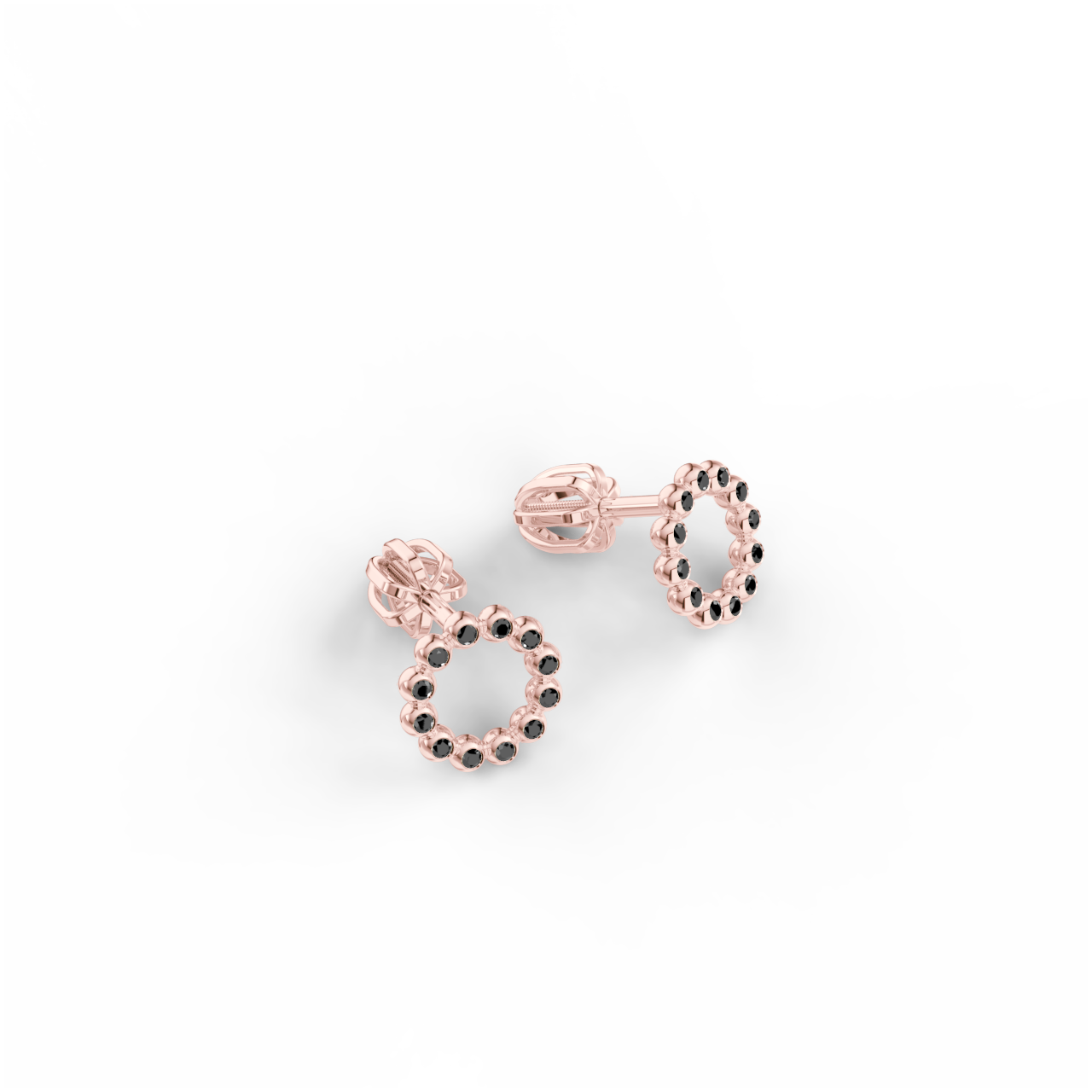 Náušnice Circle – růžové zlato, černý diamant