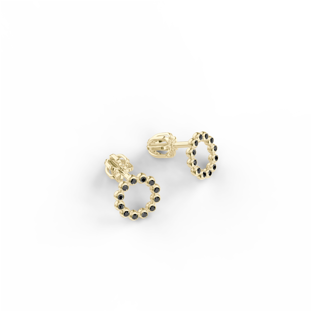 | Náušnice Bubbles Circle z kuličkového 14 Kt žlutého zlata s černými diamanty. |
