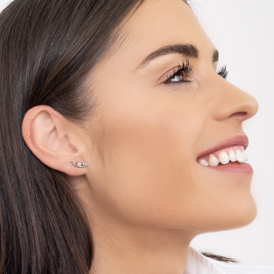 Náušnice Smile – bílé zlato, diamant, slovenský opál