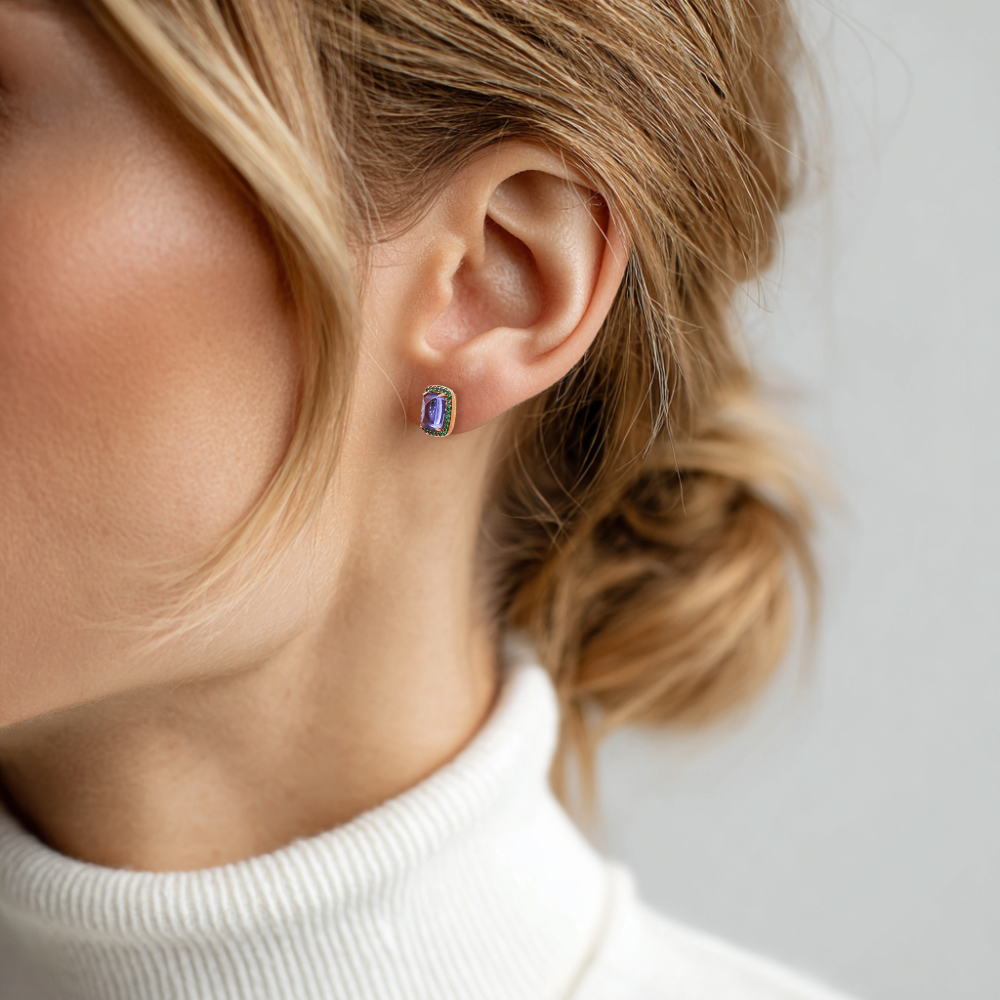 Náušnice ze 14 Kt růžového zlata s tanzanity.