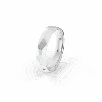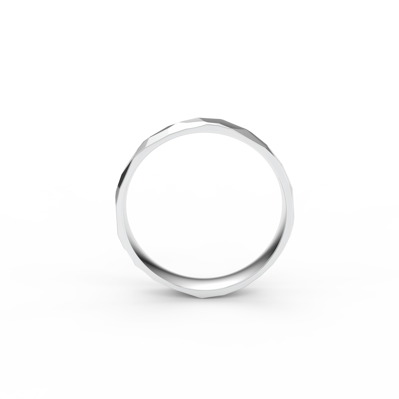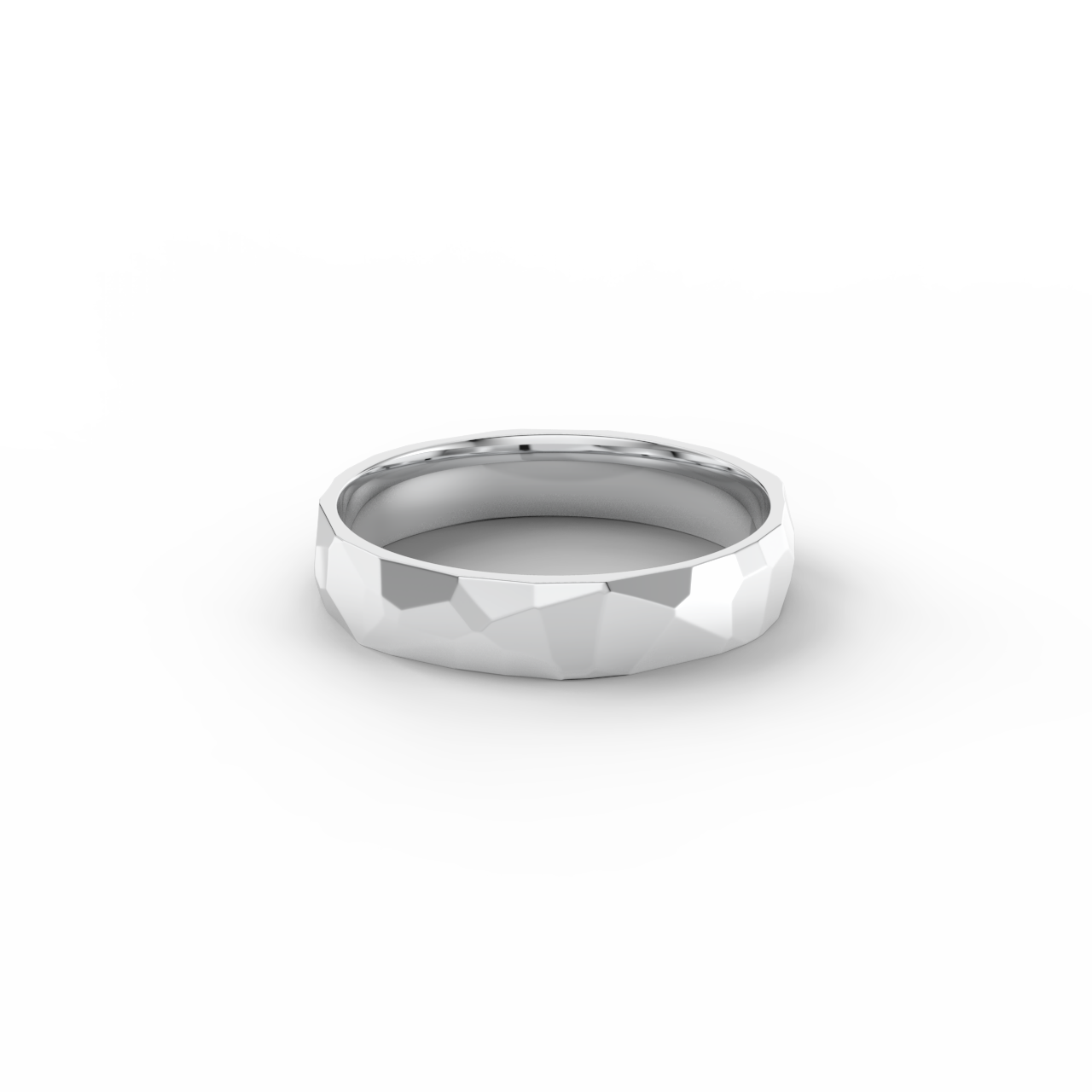 Pánský snubní prsten ze 14 Kt bílého zlata s tepaným vzorem.