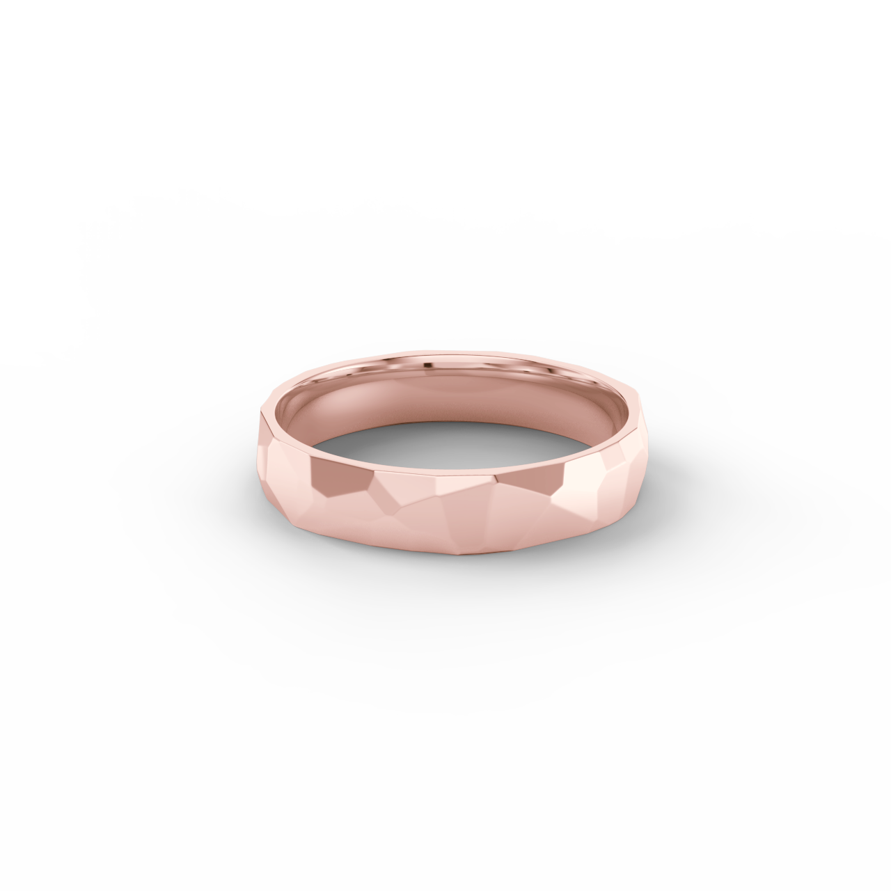 Pánský snubní prsten ze 14 Kt růžového zlata s tepaným vzorem.
