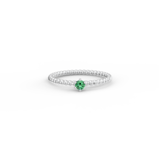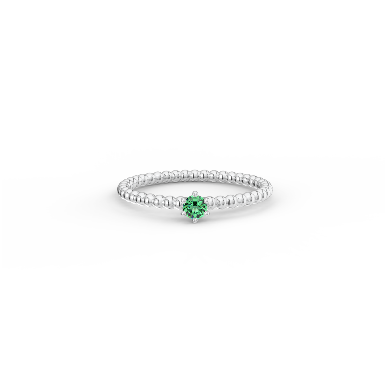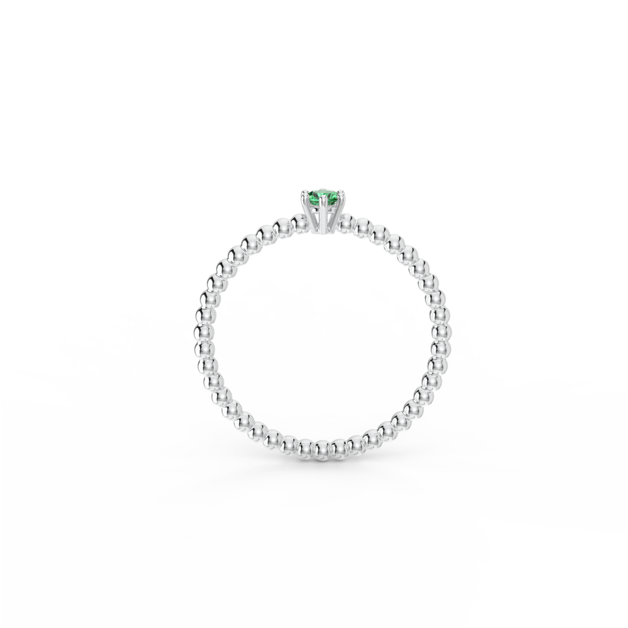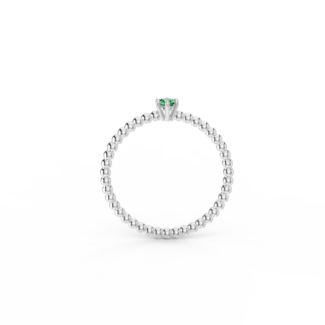 Prsten z kuličkového 14 Kt bílého zlata se smaragdem o velikosti 3 mm.