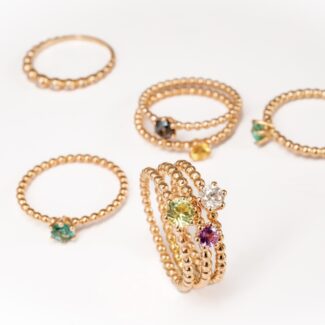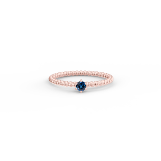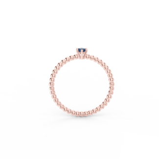 Prsten z kuličkového 14 Kt růžového zlata s modrým safírem o velikosti 3 mm.