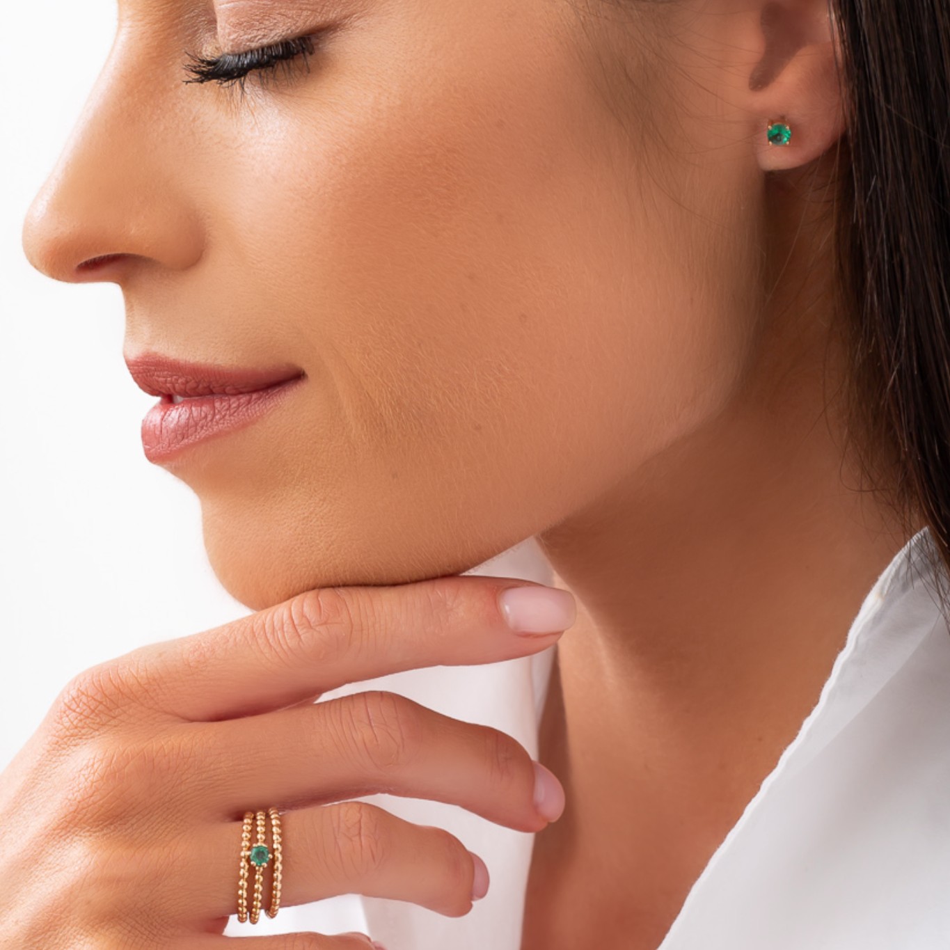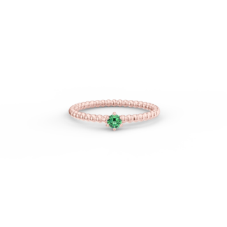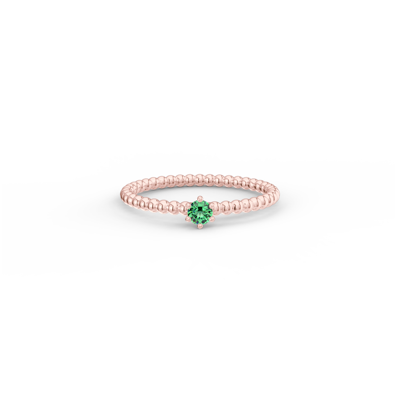 Prsten z kuličkového 14 Kt růžového zlata se smaragdem o velikosti 3 mm.