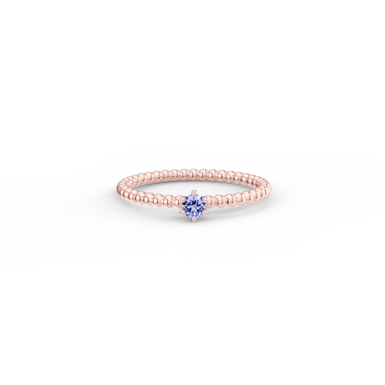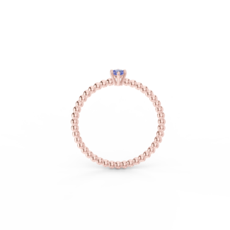 Prsten z kuličkového 14 Kt růžového zlata s tanzanitem o velikosti 3 mm.