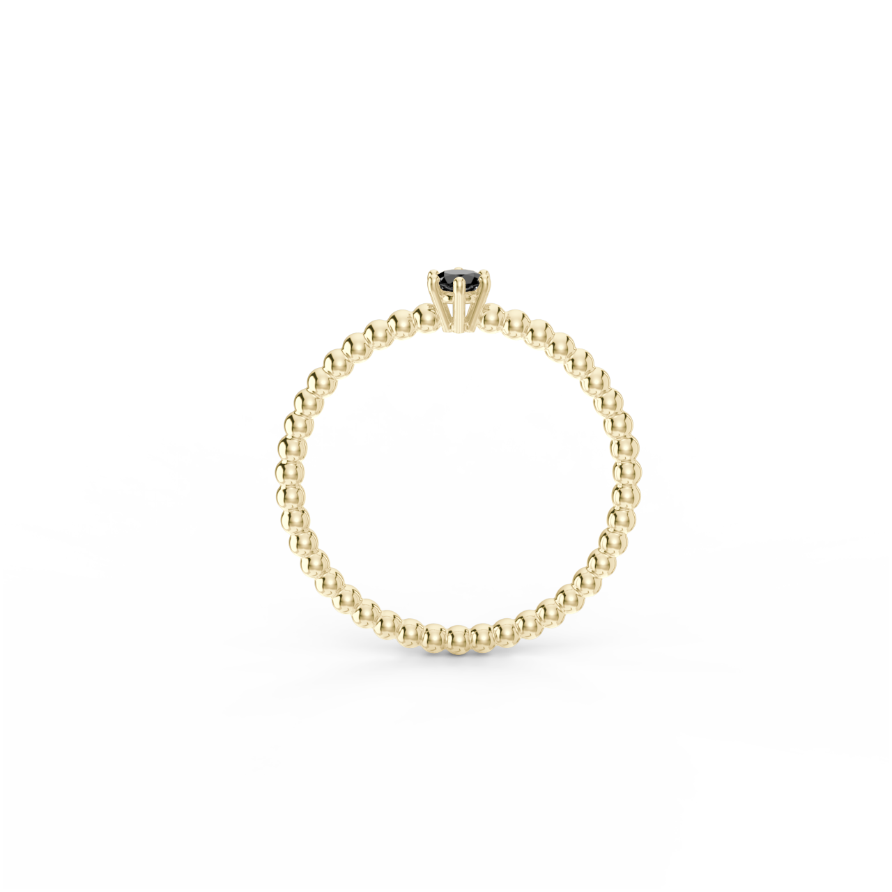 Prsten z kuličkového 14 Kt žlutého zlata s černým diamantem ve velikosti 3 mm.