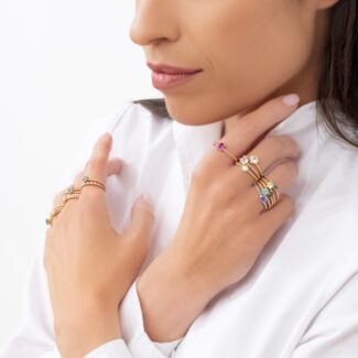 Prsten Bubbles 3 – žluté zlato, modrý safír
