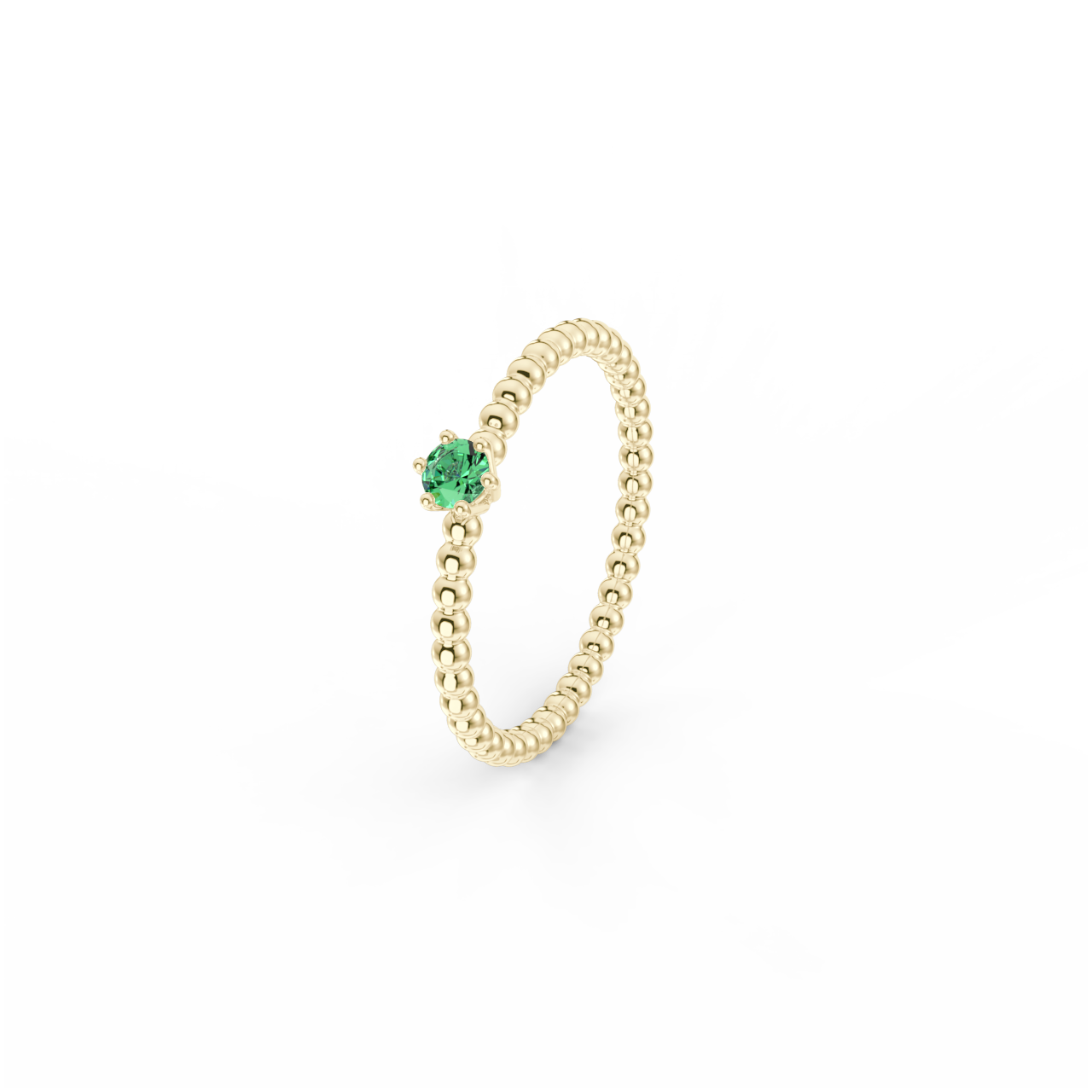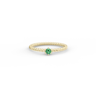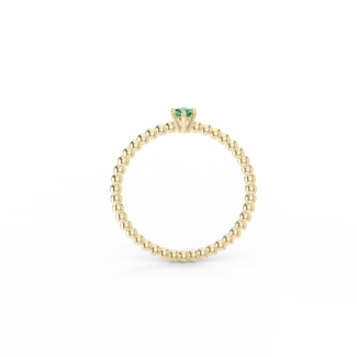 Prsten z kuličkového 14 Kt žlutého zlata se smaragdem o velikosti 3 mm.