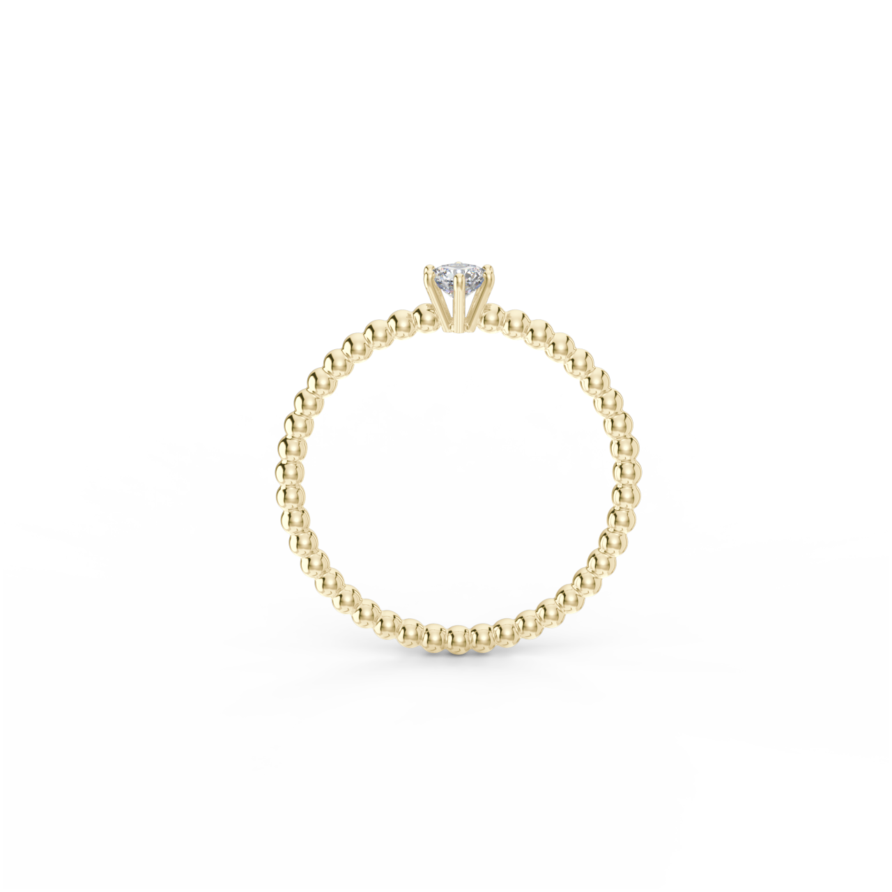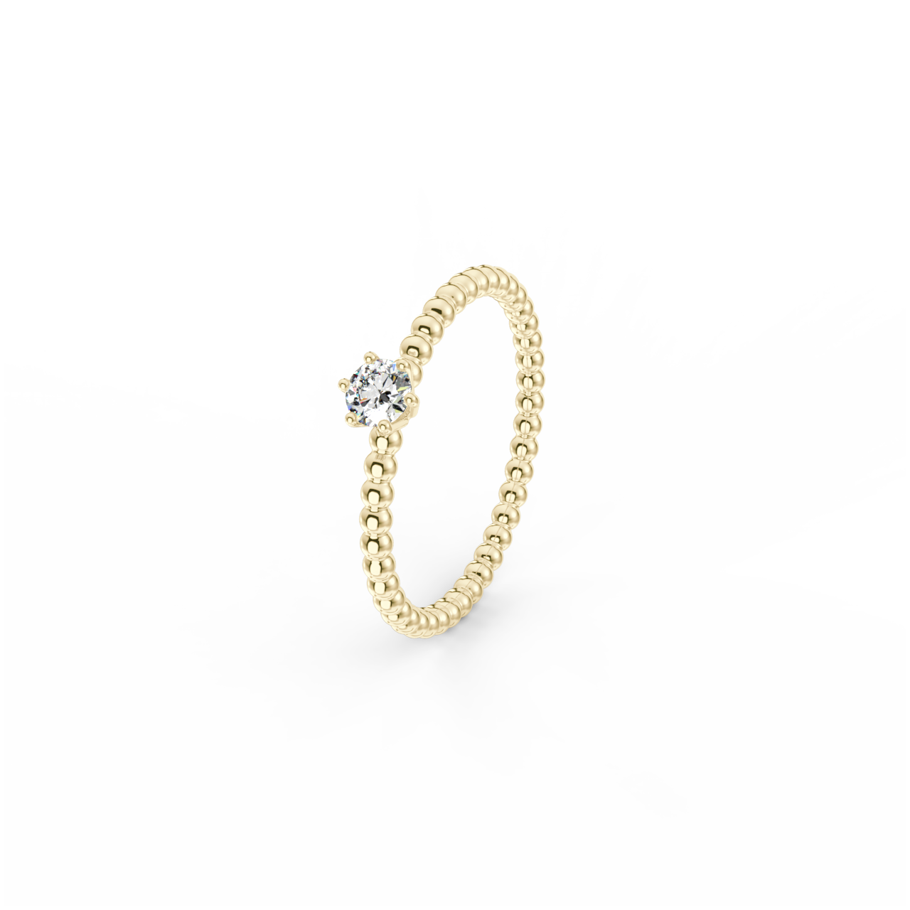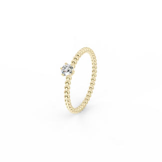 | Prsten z kuličkového 14 Kt žlutého zlata s diamantem o velikosti 3,5 mm. |