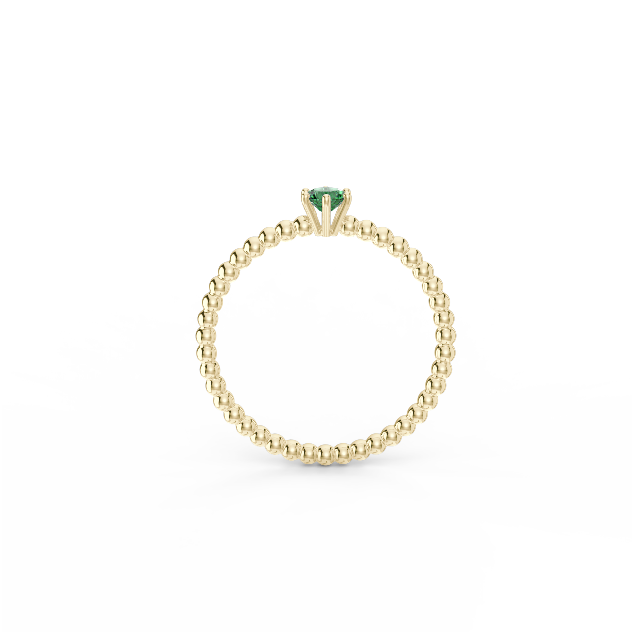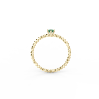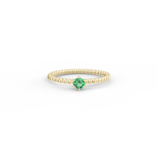 Prsten z kuličkového 14 Kt žlutého zlata se smaragdem o velikosti 3,5 mm.
