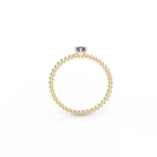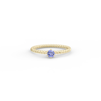 Prsten z kuličkového 14 Kt žlutého zlata s tanzanitem o velikosti 3,5 mm.