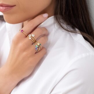 Prsten Bubbles 4 – růžové zlato, modrý safír