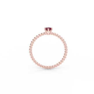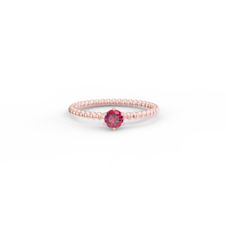 Prsten z kuličkového 14 Kt růžového zlata s rubínem o velikosti 4 mm.