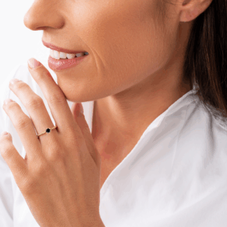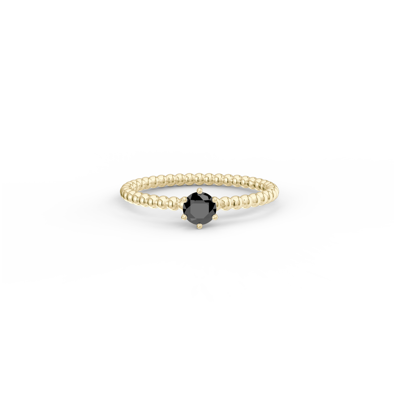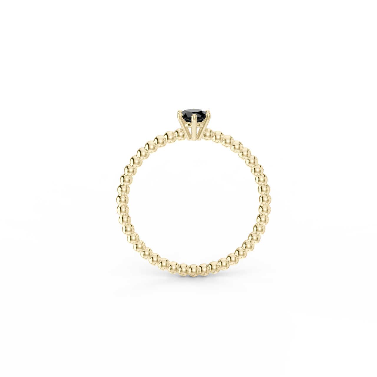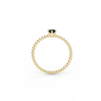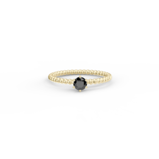 Prsten z kuličkového 14 Kt žlutého zlata s černým diamantem o velikosti 4 mm.