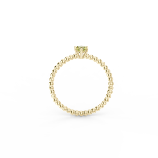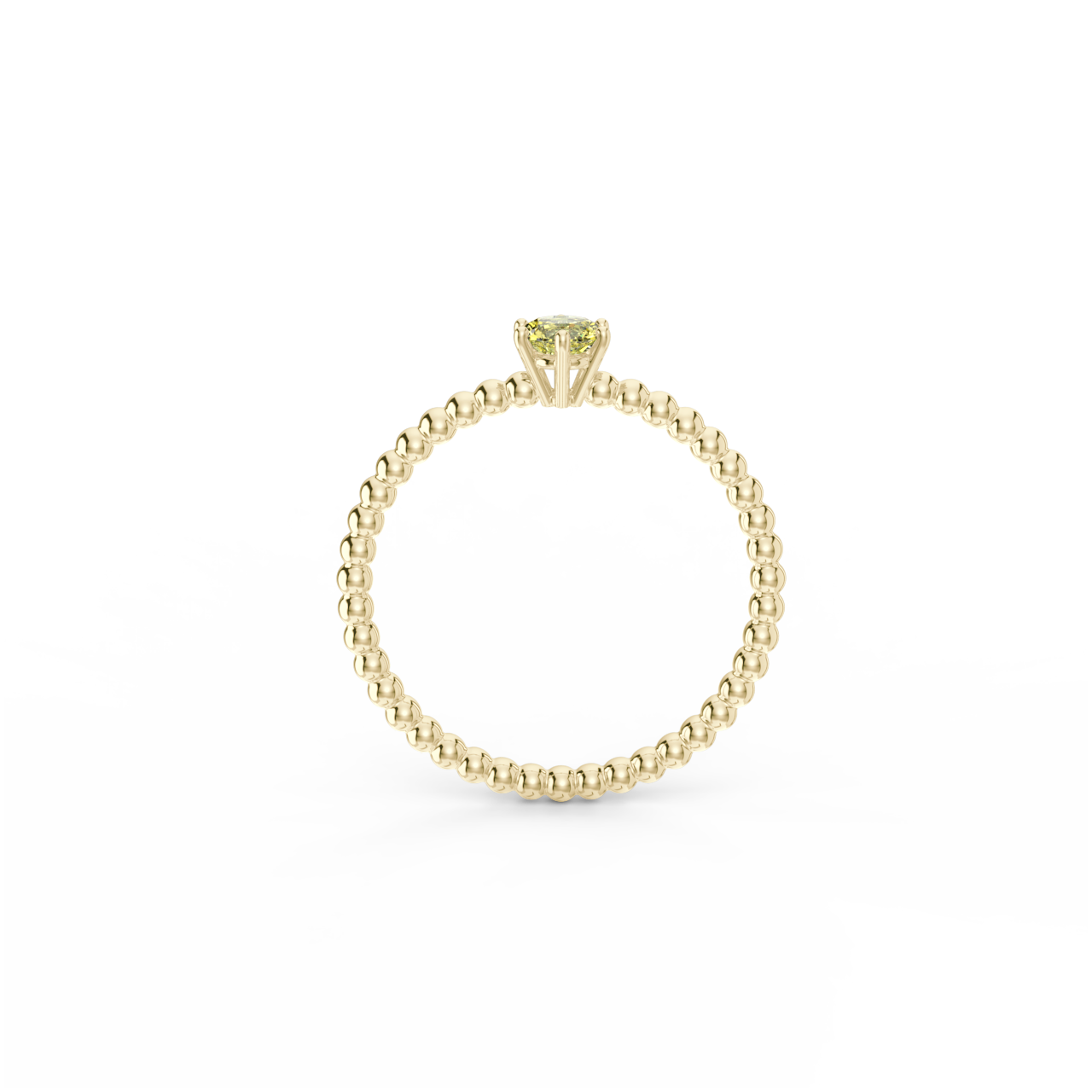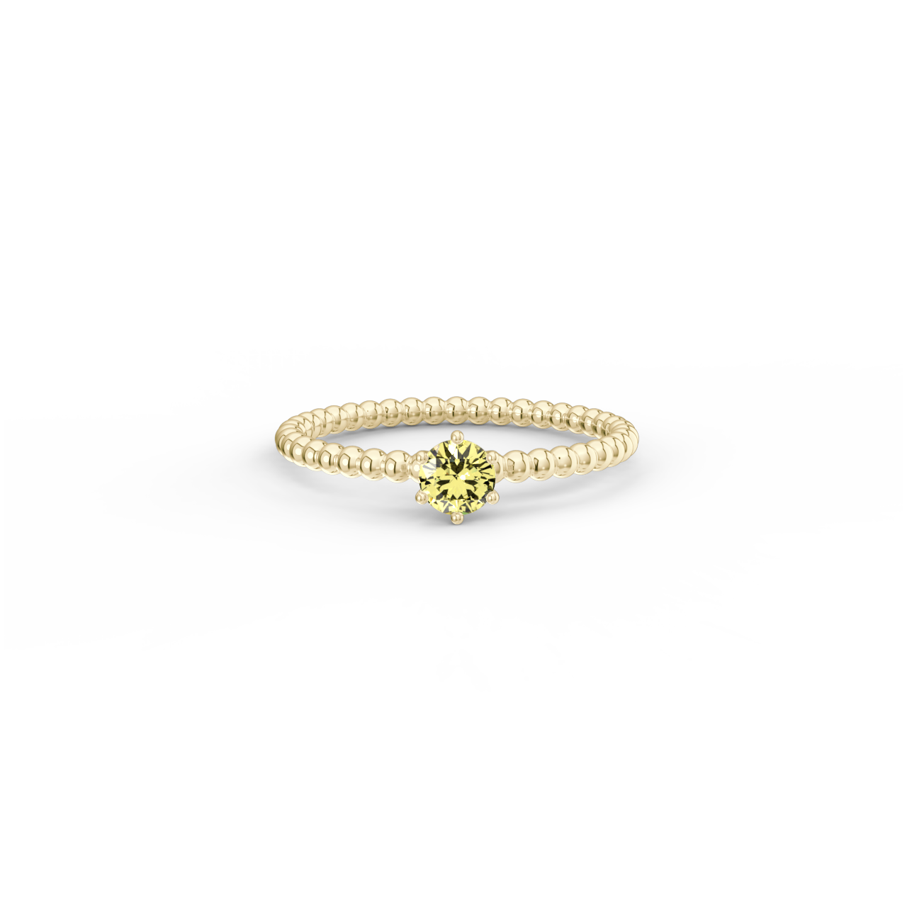 Prsten z kuličkového 14 Kt žlutého zlata s žlutým safírem o velikosti 4 mm.