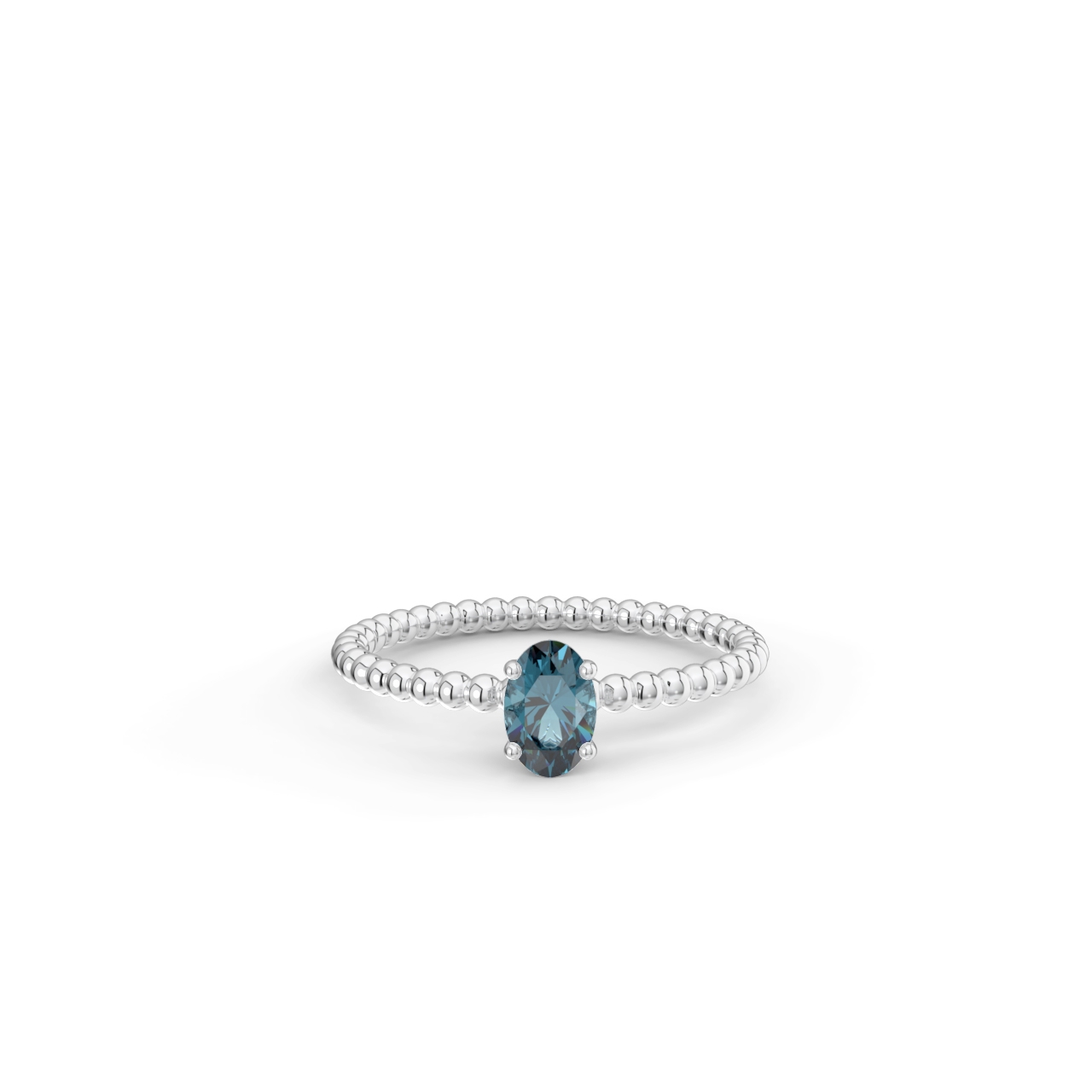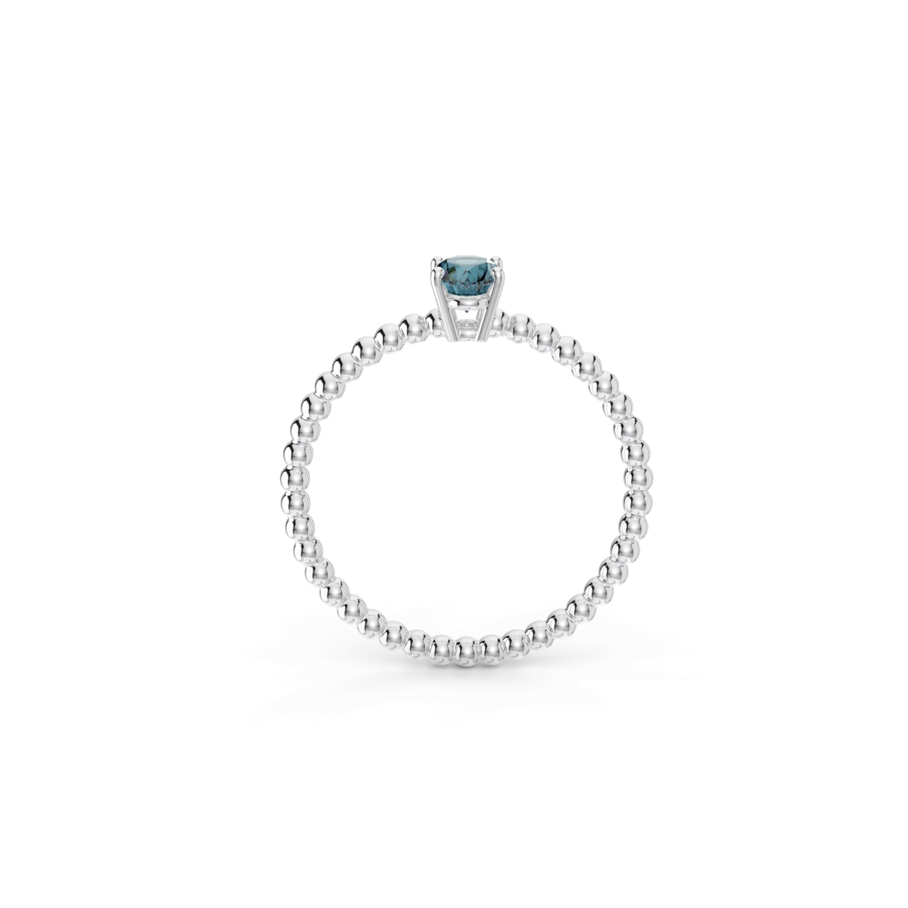 Prsten z kuličkového 14 Kt bílého zlata s oválným london topazem o velikosti 6 x 4 mm.