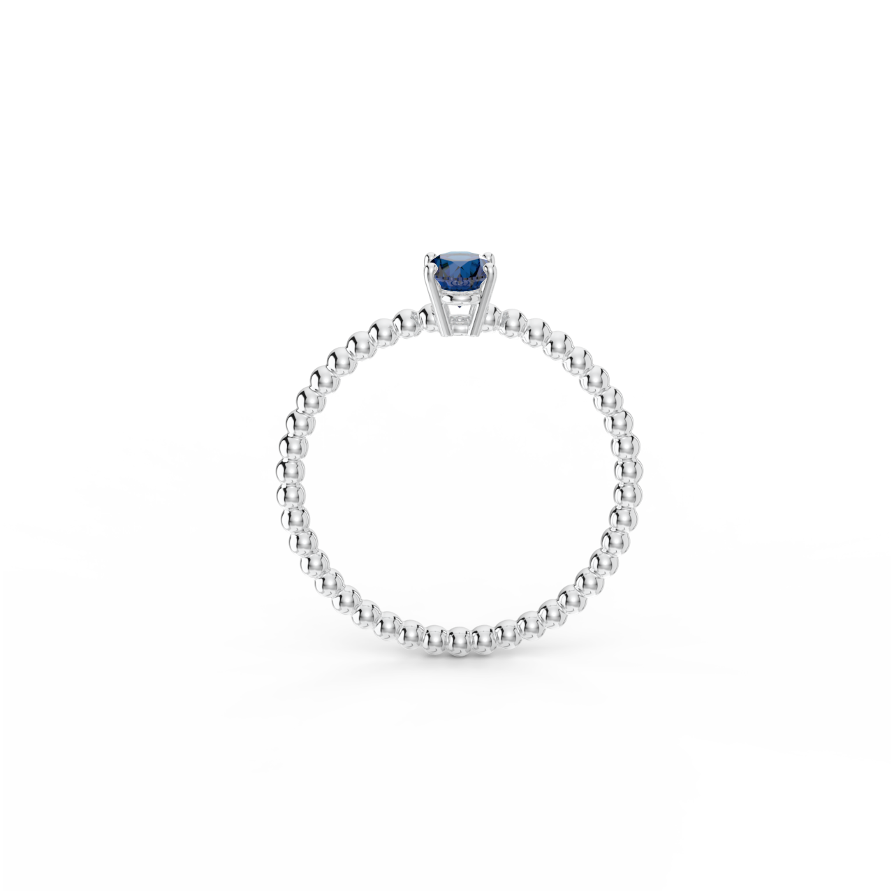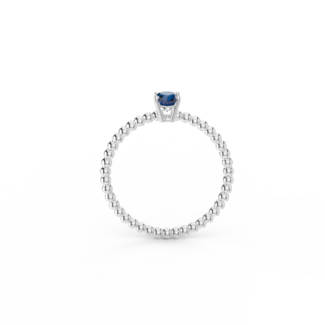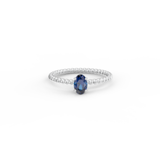 Prsten z kuličkového 14 Kt bílého zlata s oválným modrým safírem o velikosti 6 x 4 mm.