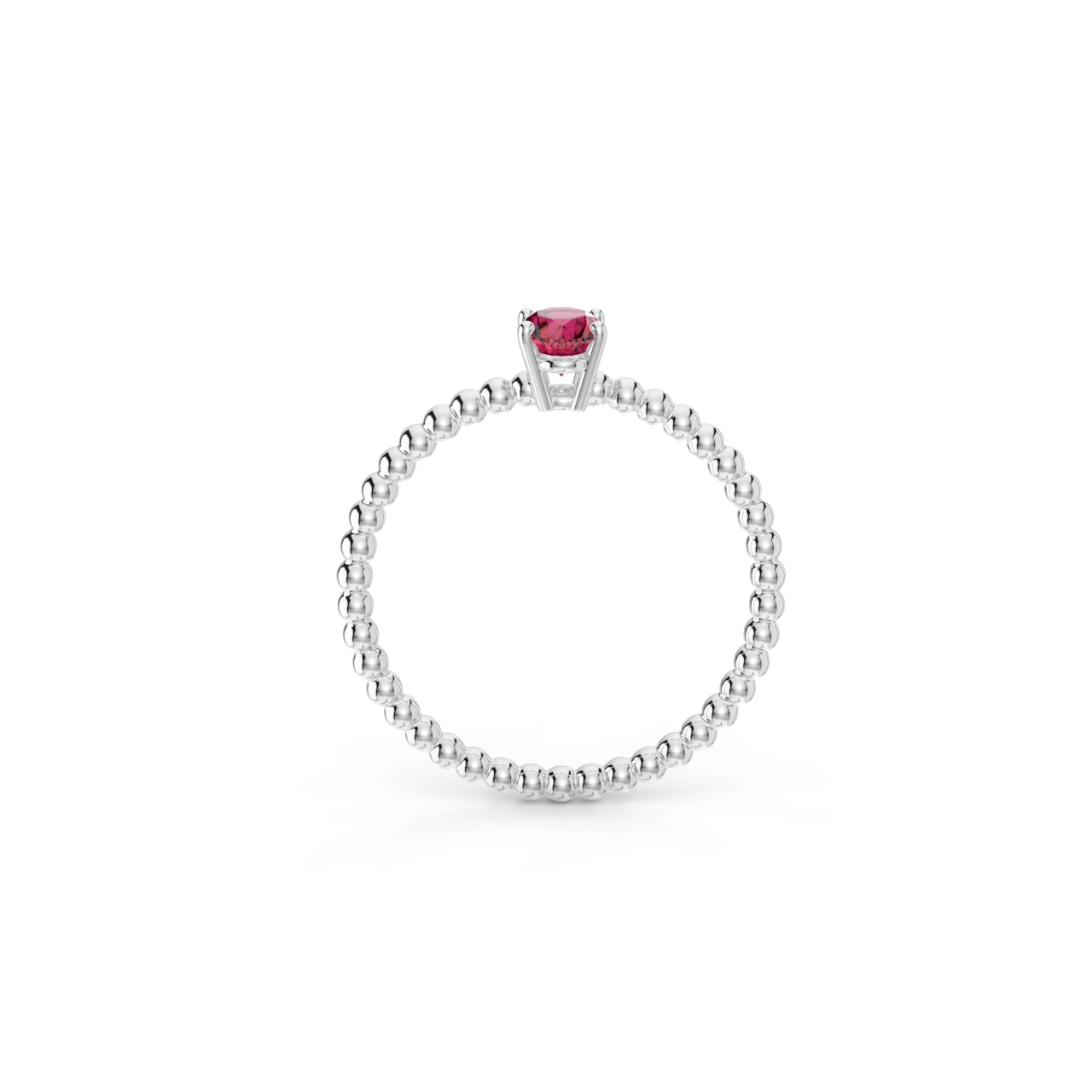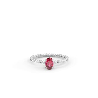 Prsten z kuličkového 14 Kt bílého zlata s oválným rubínem o velikosti 6 x 4 mm.