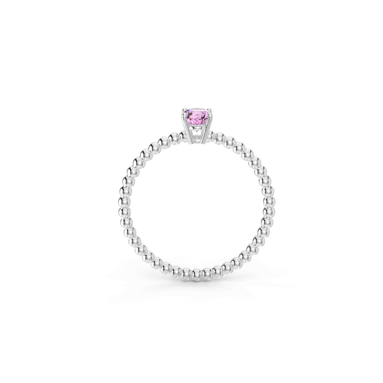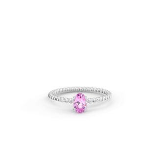 Prsten z kuličkového 14 Kt bílého zlata s oválným růžovým safírem o velikosti 6 x 4 mm.