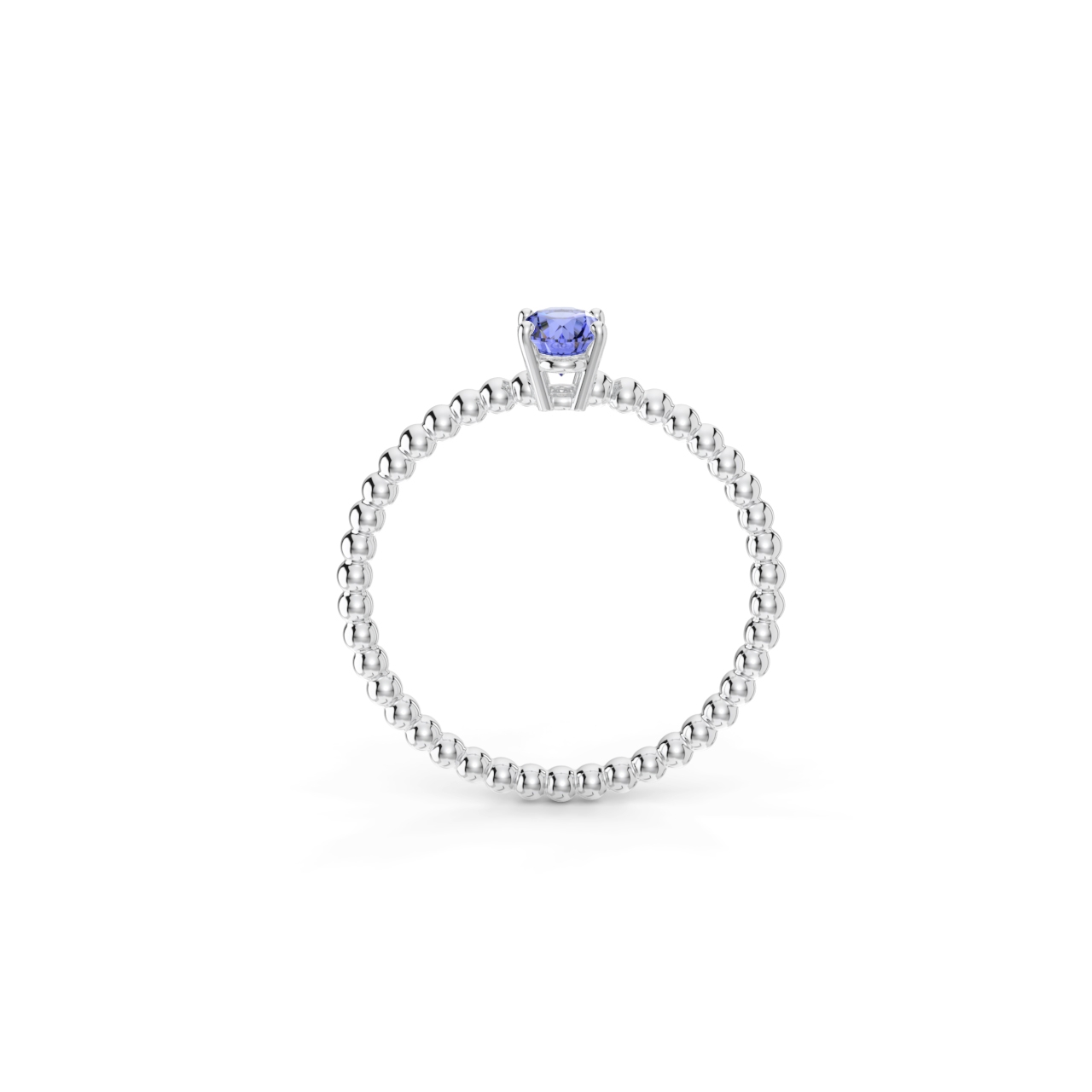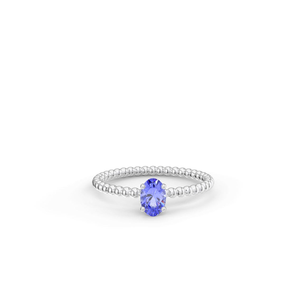 Prsten z kuličkového 14 Kt bílého zlata s oválným tanzanitem o velikosti 6 x 4 mm.