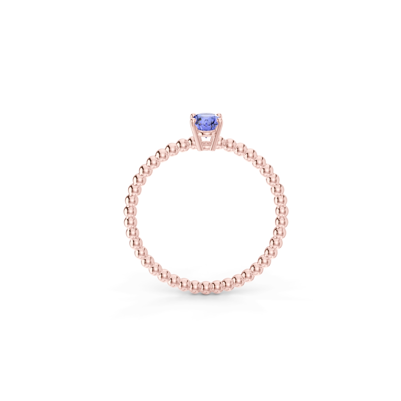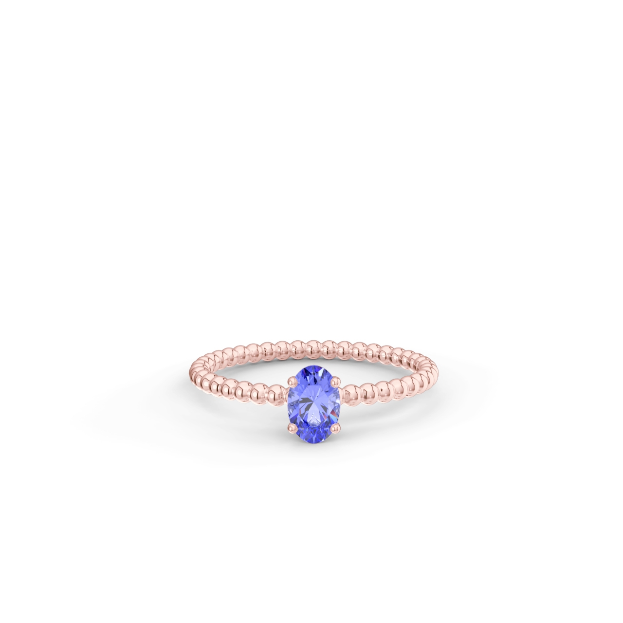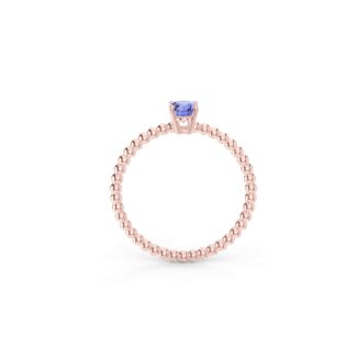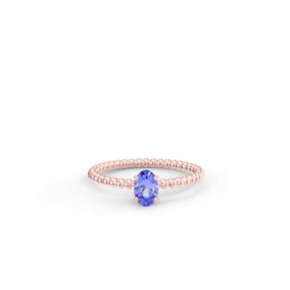 Prsten z kuličkového 14 Kt růžového zlata s oválným tanzanitem o velikosti 6 x 4 mm.