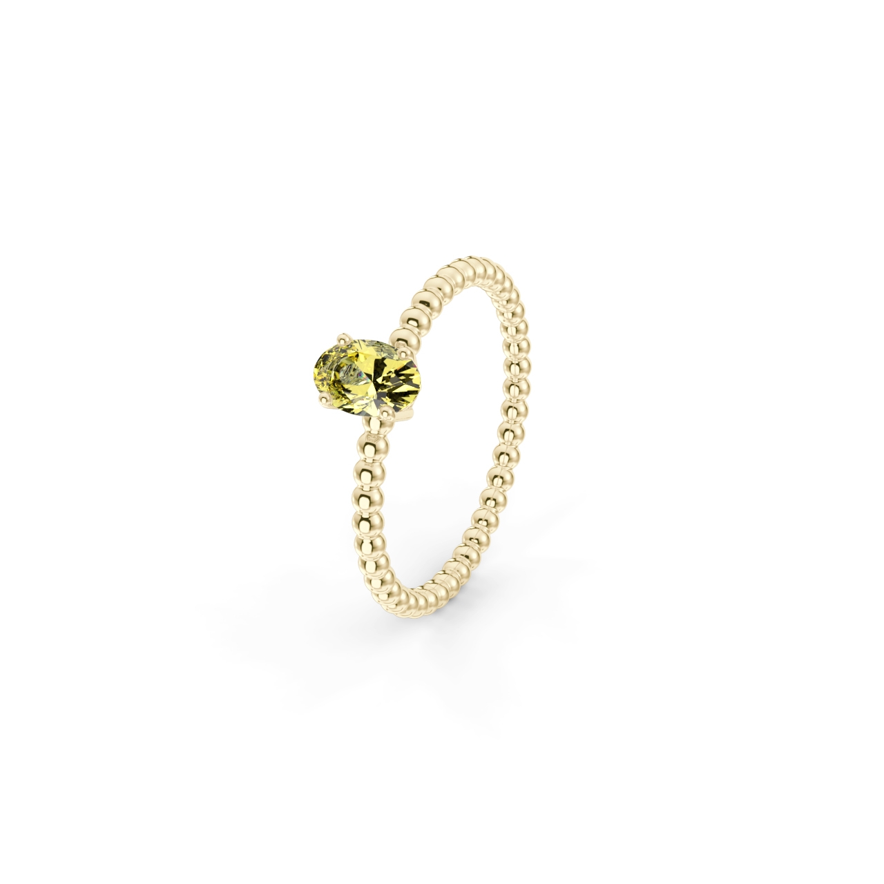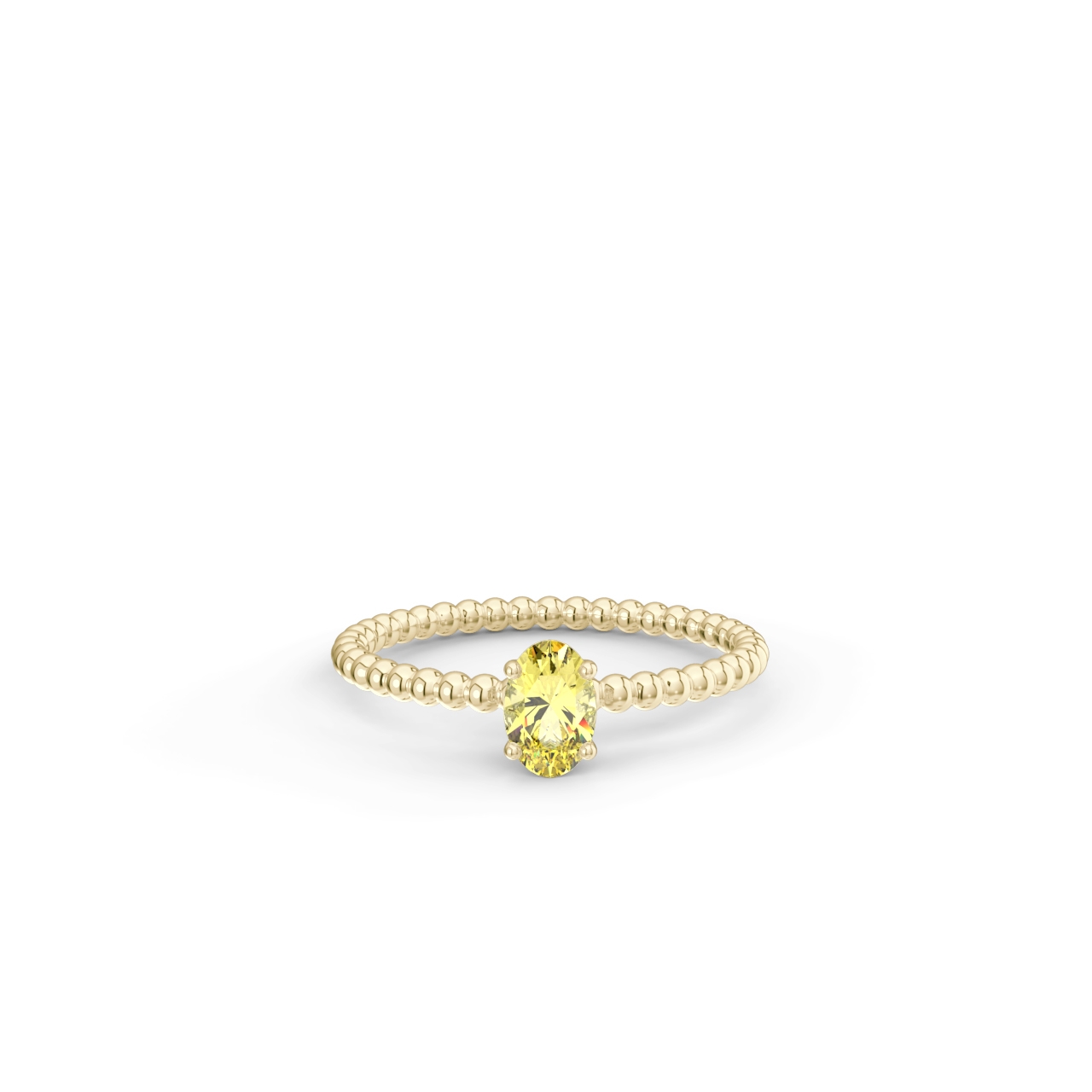 Prsten z kuličkového 14 Kt žlutého zlata s oválným žlutým safírem o velikosti 6 x 4 mm.