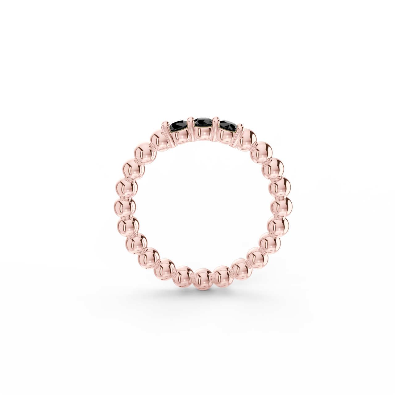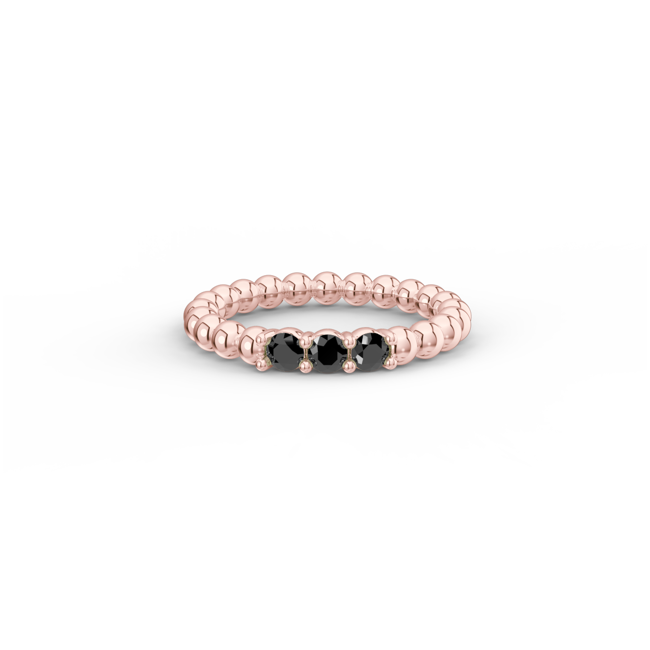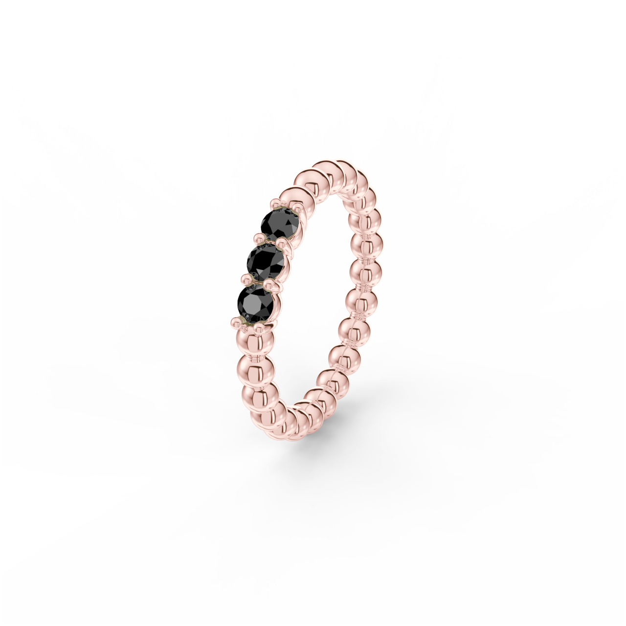 Prsten z kuličkového 14 Kt růžového zlata s černými diamanty o velikosti 2,90 mm.