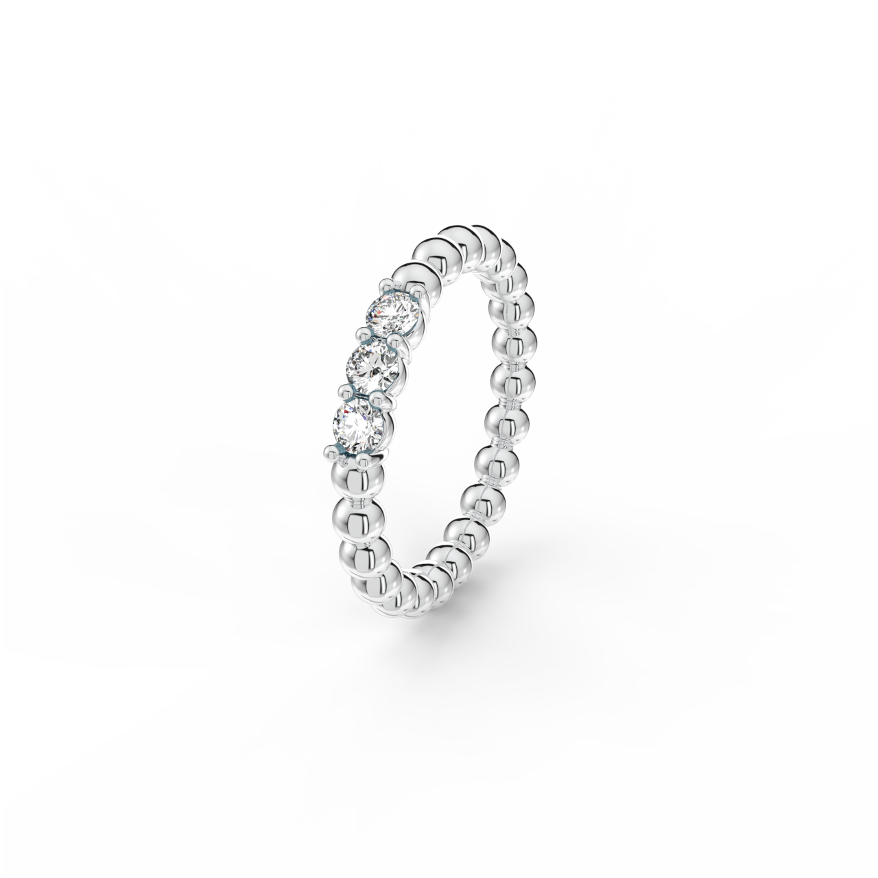 | Prsten z kuličkového 14 Kt bílého zlata s bílými diamanty o velikosti 2,90 mm. |