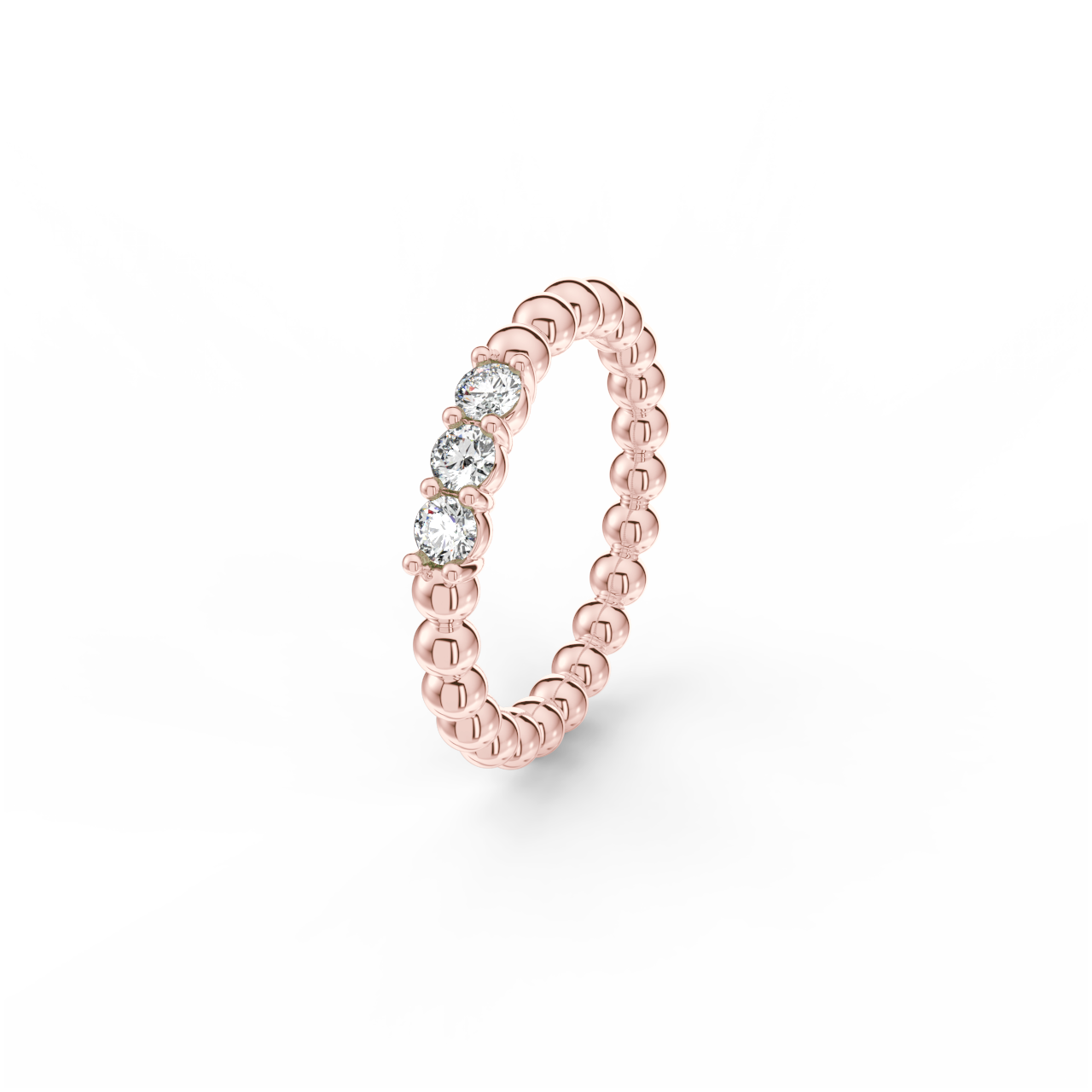 | Prsten z kuličkového 14 Kt růžového zlata s bílými diamanty o velikosti 2,90 mm. |