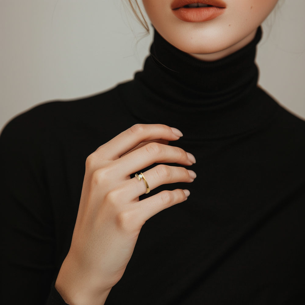 Prsten ze 14 Kt žlutého zlata s diamantem v moderním stylu.