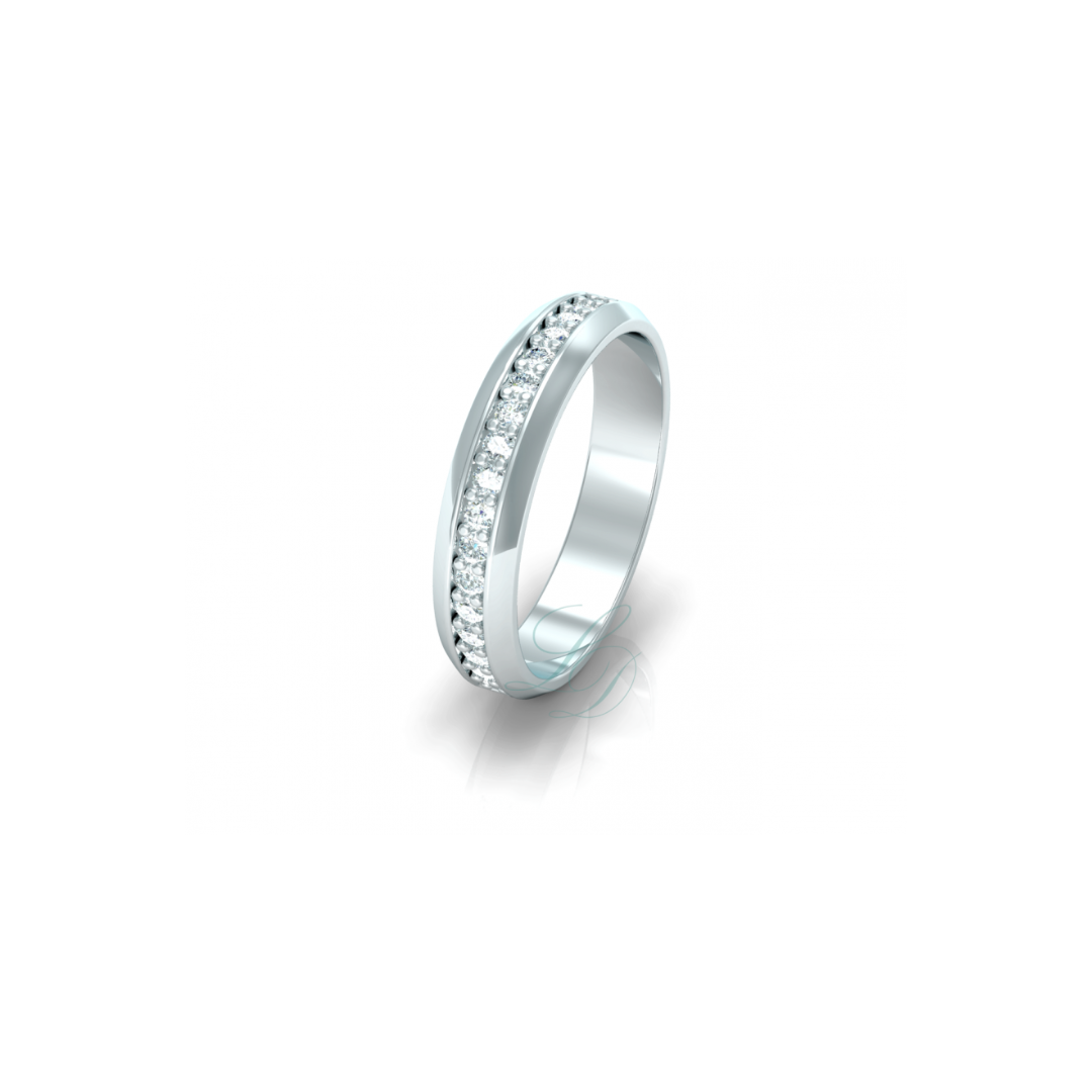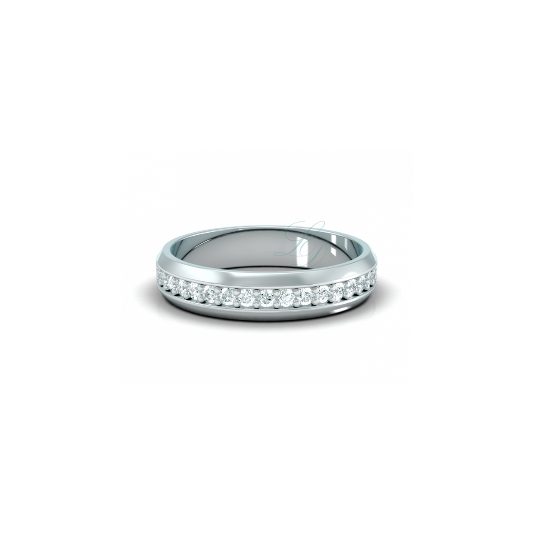 | Snubní prsten ze 14 Kt bílého zlata s přírodním diamantem. Tento prsten lze na přání zákazníka vyrobit s povrchovou úpravou lesku či matu, ve žlutém nebo růžovém zlatě. |