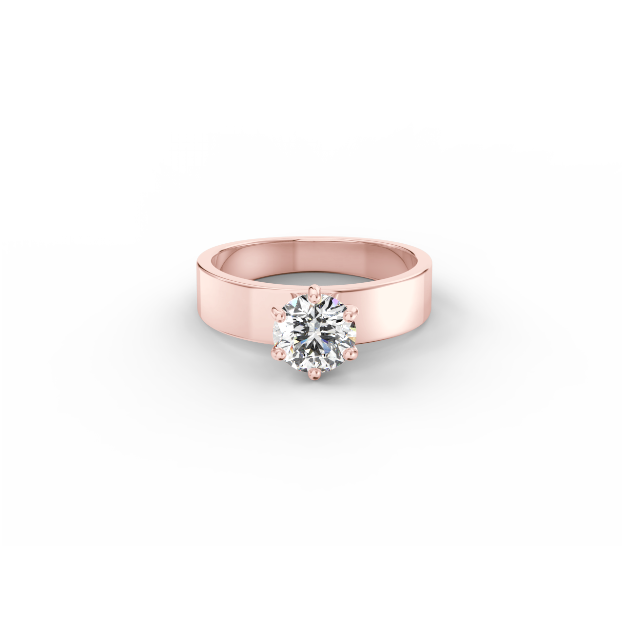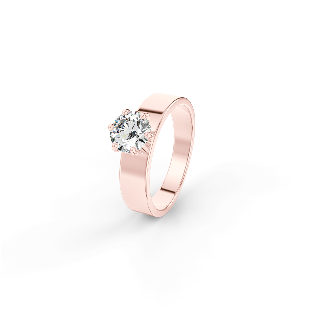Zásnubní prsten ze 14 Kt růžového zlata v moderním stylu se širokou obroučkou.