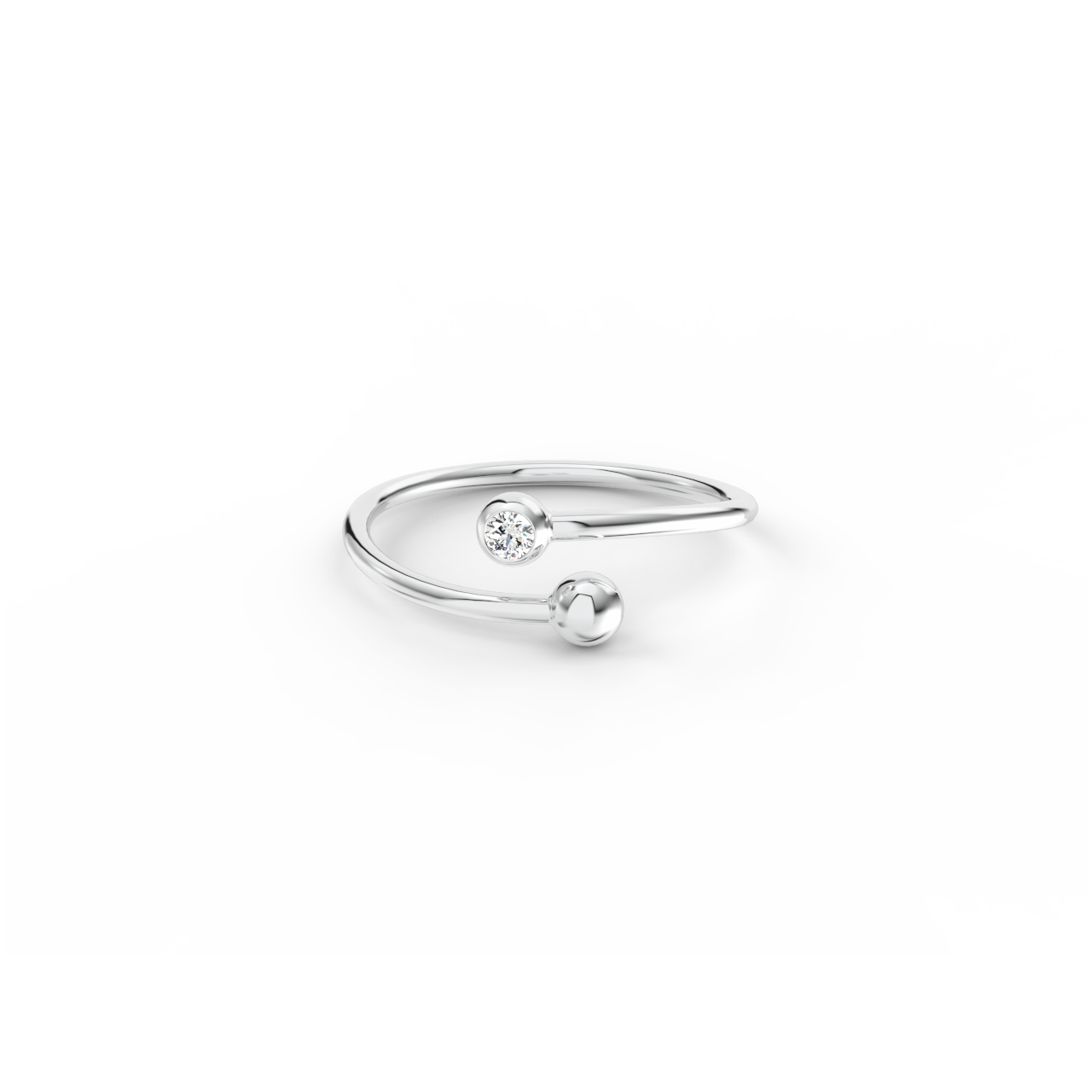 | Prsten Swirl je vyroben ze 14kt bílého zlata se zlatou kuličkou Bubbles a s 2,20mm diamantem. |